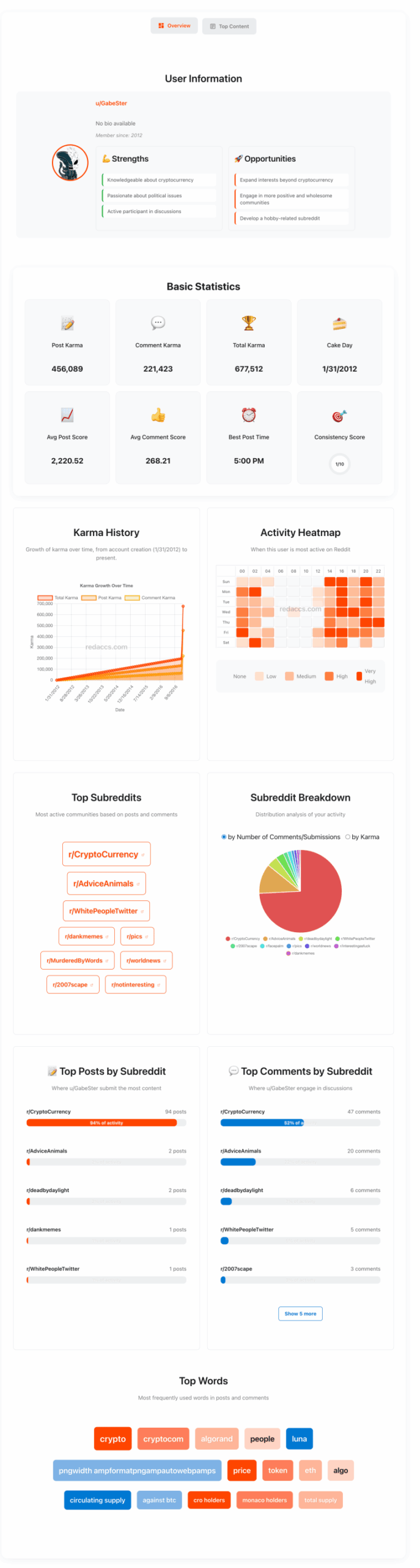 The above Reddit account analysis tool is simple to use. You don’t need to log in, and you don’t need special permissions. Everything is based on public Reddit data.